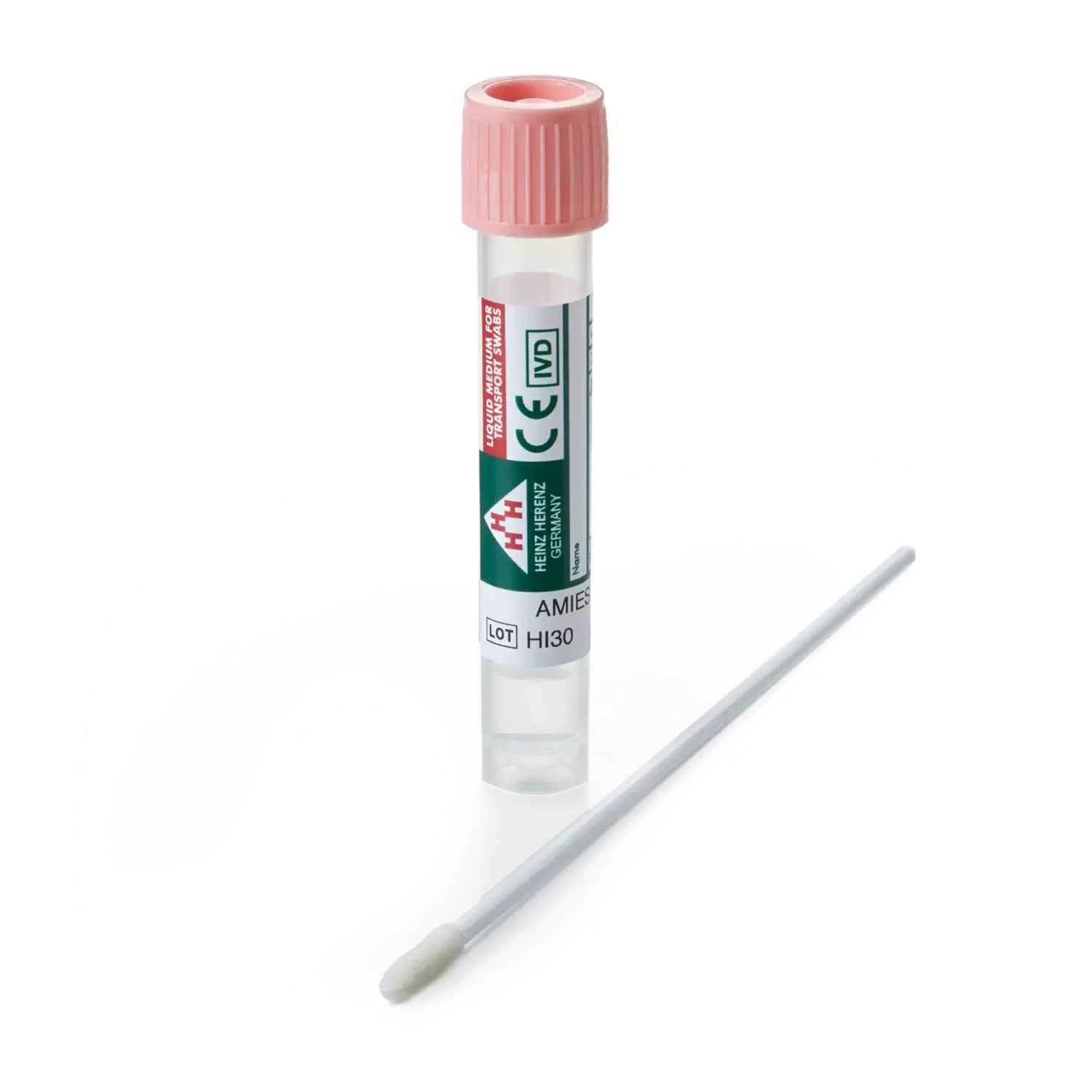 The ready-to-use swab system with Amies medium from Heinz Herenz is used to collect, preserve and transport microbiological samples. The swab is radiation sterilised and free of latex and pyrogen.