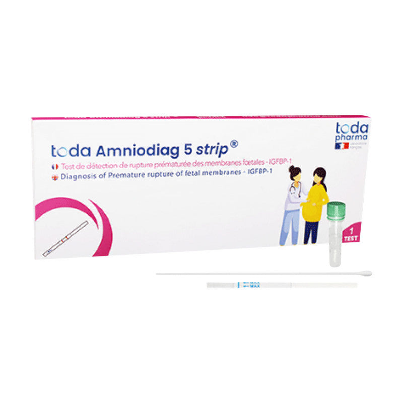 TODA AMNIODIAG 5® from Toda Pharma is an immunochromatographic rapid test designed for gynecology to reliably detect premature rupture of fetal membranes. The test identifies IGFBP-1 protein in amniotic fluid using antibodies to analyze vaginal swab samples. This not only reduces unnecessary hospital stays and costs but also helps identify the increased risk of infections for the fetus early on.